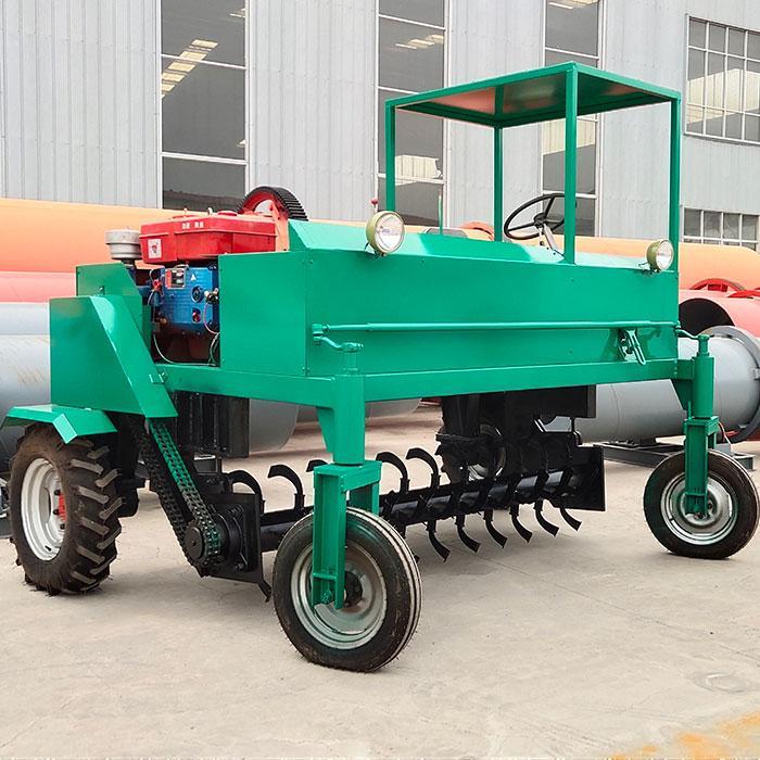 自走式翻堆機是生產(chǎn)生物有機肥專用成套設備中的主機,該機采取四輪行走設計,可前進、倒退、轉(zhuǎn)彎,由一人操控駕駛。行駛中整車騎跨在予先堆置的長條形肥基上,由機架下掛裝的旋轉(zhuǎn)刀軸對肥基原料實施翻拌、蓬松、移堆,車過之后篡成新的條形垛堆。即可在開闊場地,也可在車間大棚中實施作業(yè)。該機一大技術(shù)突破在于整合了物料發(fā)酵后期的破碎功能。隨著物料逐漸脫水,加裝破碎裝置的刀軸可有效地破碎肥料在發(fā)酵過程中形成的板塊,不僅省去了一臺粉碎機,更主要的大大提高了粉碎的效率,降低了成本。